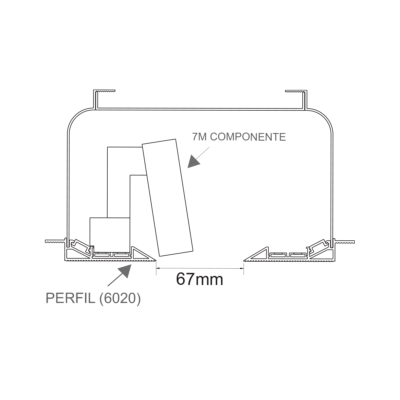 7M Sistema Trilho Magnético com Caixa Alumínio 6020 | Perfil de embutir | PARA FITA LED e Componentes Abertura 67mm | metro linear