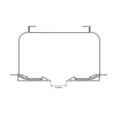 Perfil = 202mm x 131mm x metro linear (L x H x C)Abertura = 32mm