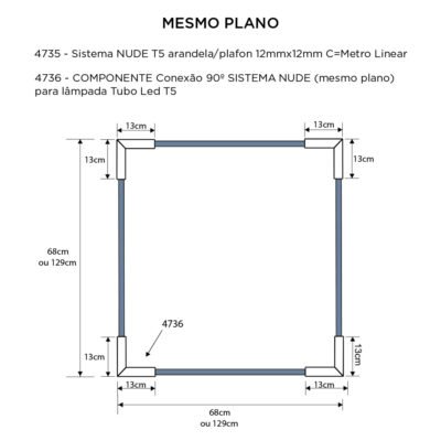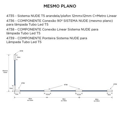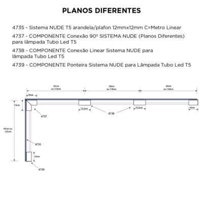 Sistema Nude T5 4738 | Componente Conexão linear | 26mm x 55mm x 176mm | PARA 2x lâmpadas Tubo LED T5