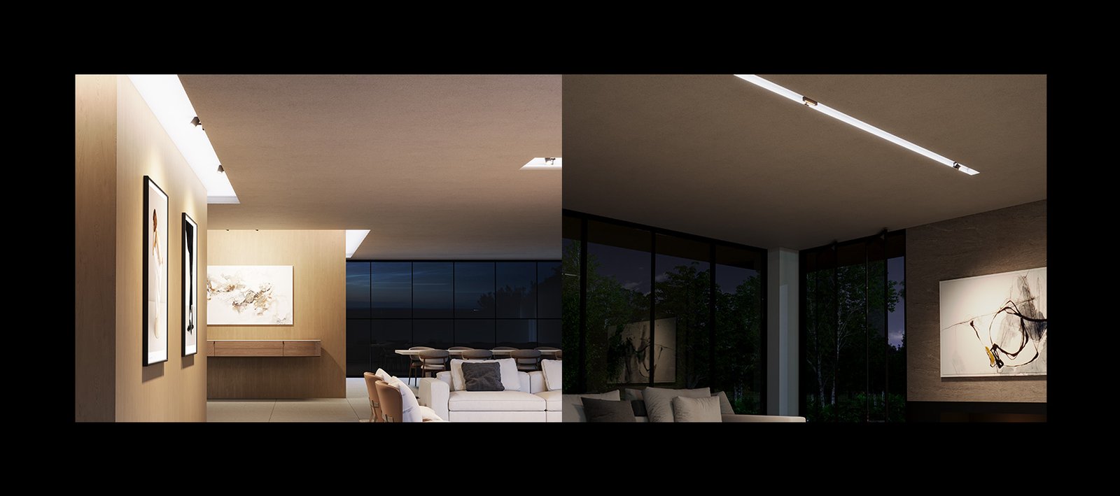 Sistema de iluminação linear de embutir em alumínio. O sistema é fornecido sob encomenda em qualquer comprimento, embora o comprimento máximo para que não haja junção de perfis é de 3 metros. Para alimentação das fitas led, os drivers deverão ser instalados de forma remota. (opções em "Equipamento")Para alimentação do trilho, o driver pode ser instalado remotamente ou com o componente Módulo com Driver Iluminar 72W (CÓD.:6015)